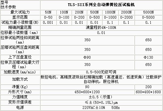 產(chǎn)品概述: TLS-SII系列全自動(dòng)數(shù)顯式拉壓試驗(yàn)機(jī)是適用于拉壓試驗(yàn)的新型試驗(yàn)設(shè)備。試驗(yàn)機(jī)主機(jī)的設(shè)計(jì)具有外形美觀、操作方便、性能穩(wěn)定可靠的特點(diǎn)。試驗(yàn)機(jī) 采用數(shù)控電機(jī)及先進(jìn)的單片機(jī)控制技術(shù)加載及控制,機(jī)械式彈簧疲勞試驗(yàn)機(jī),能實(shí)現(xiàn)雙速預(yù)置。實(shí)現(xiàn)了高速逼近,低速采集。提高了測(cè)試精度,保證了試驗(yàn)效率。 功能特點(diǎn): 自動(dòng)變速檢測(cè)5個(gè)測(cè)試點(diǎn),并自動(dòng)返回到試驗(yàn)初始位置 LED顯示,煙臺(tái)彈簧試驗(yàn)機(jī)價(jià)格,人機(jī)對(duì)話直觀明了便于操作 可以選擇多種測(cè)試方法,順次自動(dòng)完成一批工件的測(cè)試,可查看已測(cè)數(shù)據(jù) 傳感器引起的變形量可以補(bǔ)償,立式彈簧扭轉(zhuǎn)試驗(yàn)機(jī),既傳感器和整機(jī)剛度引起的變形不影響位移精度。 可實(shí)現(xiàn)試驗(yàn)力、試驗(yàn)速度、位移等多種控制方式,具有以下功能: 設(shè)定變形量F,檢測(cè)彈簧的試驗(yàn)力P; 設(shè)定彈簧的剩余高度H,檢測(cè)彈簧的試驗(yàn)力P; 彈簧變形的檢測(cè)已工作壓盤(pán)接觸彈簧為準(zhǔn),此時(shí)試驗(yàn)力有反應(yīng),試驗(yàn)力(初始力)的大小任意設(shè)定。 技術(shù)參數(shù):